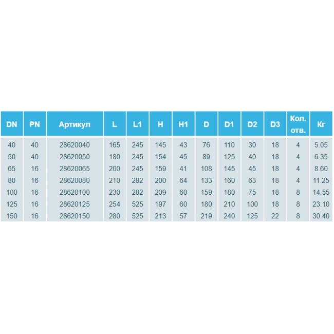 | Номинальное давление PN, bar | 16 |