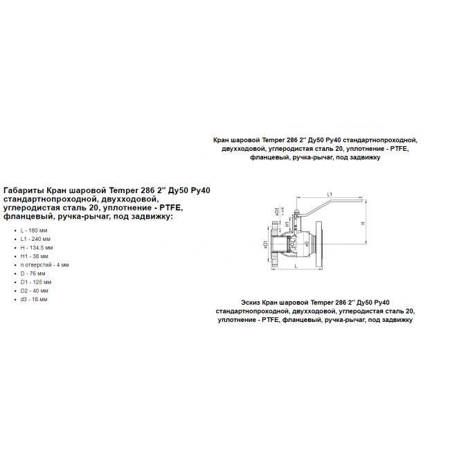 Кран шаровый 50 фланцевый Temper