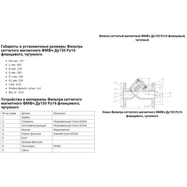 Для работы с промышленной холодной и горячей водой. А также паром и химически нейтральными агентами. Особенности фильтра сетчатого фланцевого: Устанавливается только в горизонтальном положении. Установка в вертикальном и наклоненном положении возможно только в случае когда поток направлен сверху вниз. Продувное отверстия для очистки. Гидростатические испытания соответственно к EN – 12266-1. Сертификат WRAS относительно контакта с питьевой водой