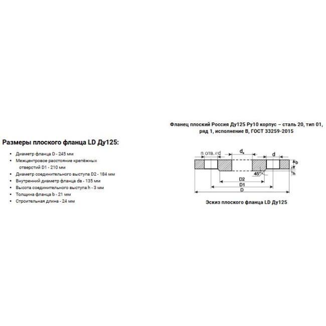 | Наружный диаметр фланца, мм | 245 |