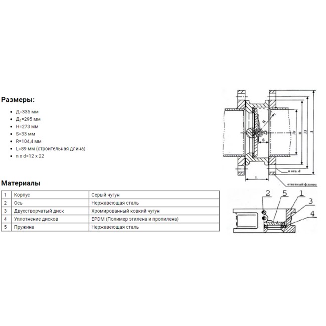 Клапан обратный межфланцевый двухстворчатый 200* 16"
