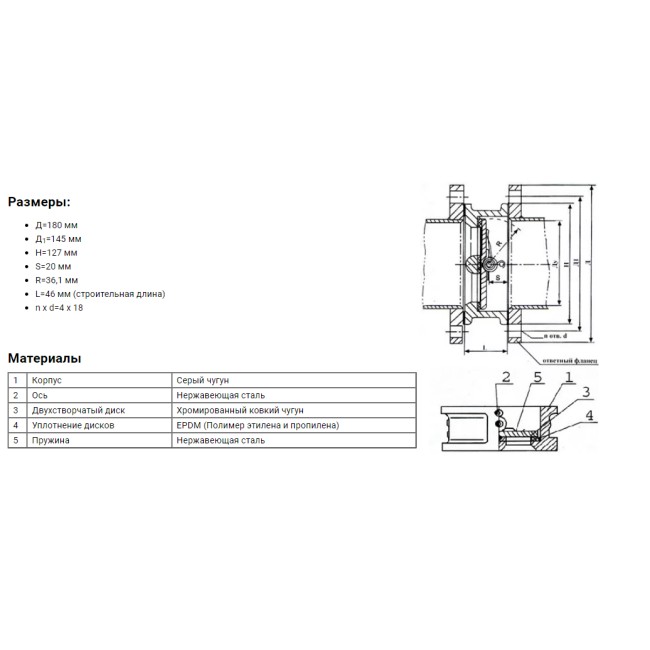 Клапан обратный межфланцевый двухстворчатый 65* 16"