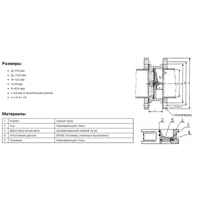 Клапан обратный межфланцевый двухстворчатый 80* 16"