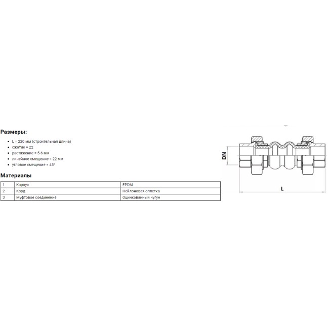 | Материал компенсатоора | EPDM |