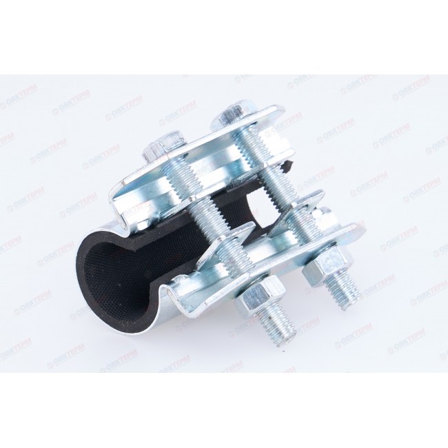 Хомут ремонтный используется для быстрого устранения проблем на трубопроводе (течь, свищ, трещина). Изготовлен из оцинкованной стали. Ремонтные хомуты являются многофункциональными, т.к. используются для труб из разных материалов. Хомуты затягиваются болтами и гайками М6.