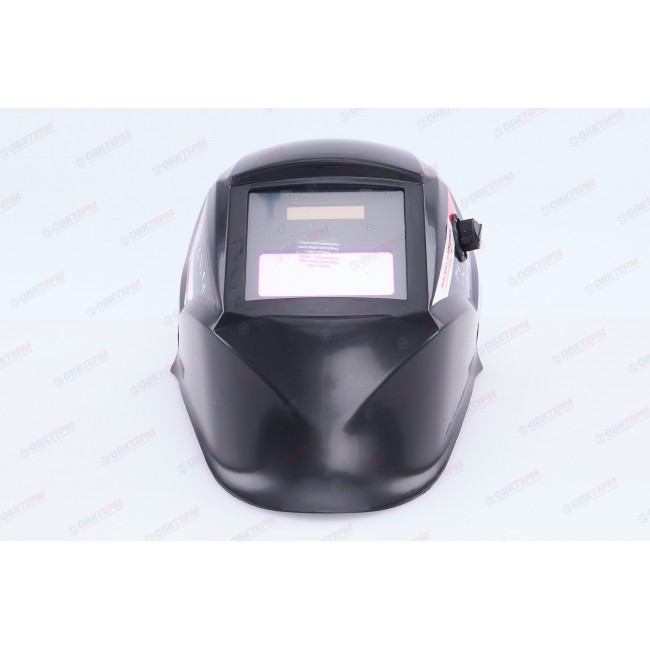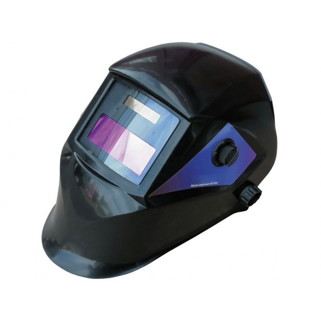 Сварочная маска предназначена для защиты лица и глаз от яркого светового ультрафиолетового и инфракрасного излучения, брызг раскаленного металла, искр сварки, окалин и прочих горящих осколков при проведении сварочных работ. Позволяет выполнять работы по стачиванию кромок и шлифованию сварочных швов. Снабжена наголовным креплением со ступенчатой фиксацией размера с дополнительным ремешком обхвата головы. Размер смотрового окна светофильтра: 90х35 мм. Степень затемнения во время сварки: DIN 9-13. Уровень защиты от УФ- и ИК-лучей: DIN 16. Источник питания: сменная батарея Li-Ion + солнечная батарея. Материал корпуса: ударостойкий термостойкий полипропилен.