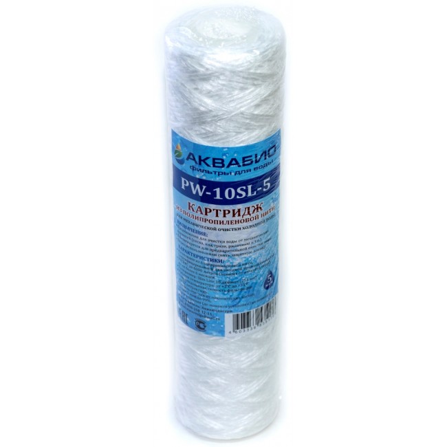 Картридж из полипропиленовой нити АКВАБИО PW-10SL-5, 5 микрон, для механической очистки холодной воды