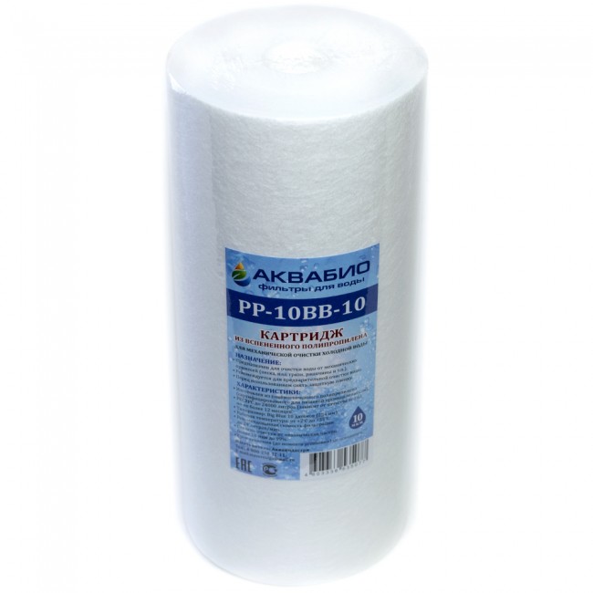 Картридж из вспененного полипропилена АКВАБИО PP-10BB-10, 10 микрон, для механической очистки холодной воды