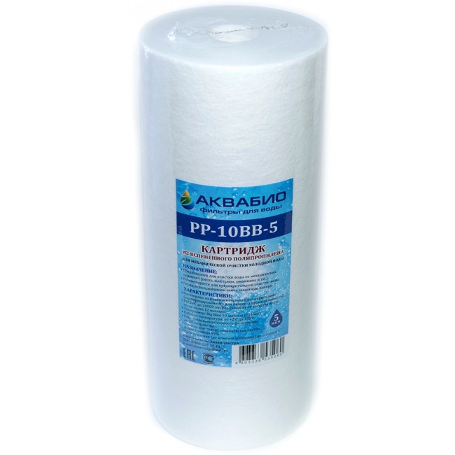 Картридж из вспененного полипропилена АКВАБИО PP-10BB-5, 5 микрон, для механической очистки холодной воды