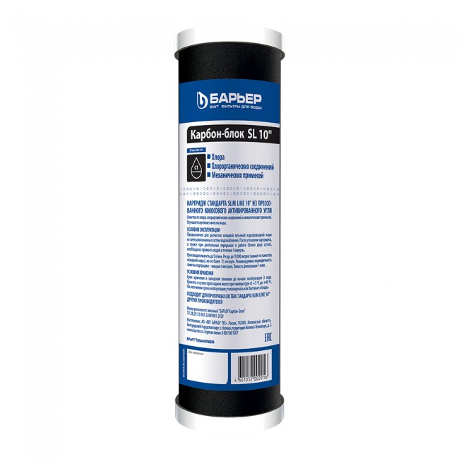Картридж БАРЬЕР «Карбон-блок» предназначен для доочистки воды от хлора и хлорорганики, фенольных соединений и механических примесей. Улучшает вкусовые качества и запах воды.