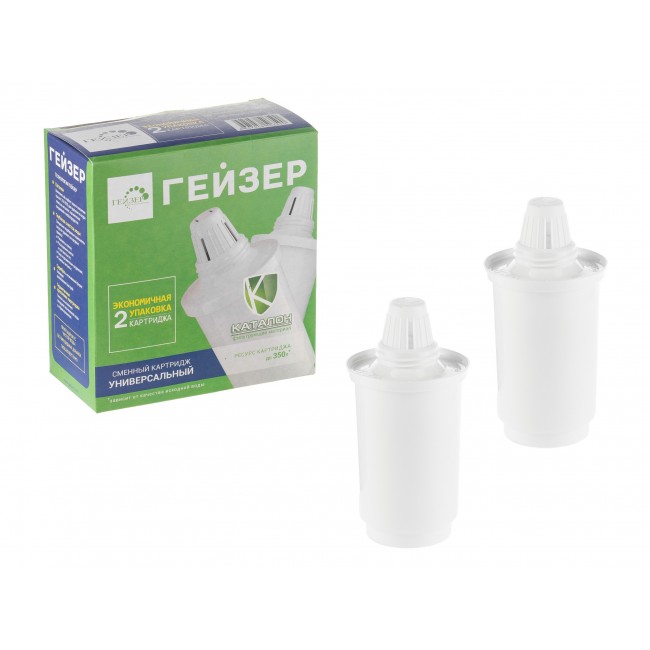Количество в упаковке: 2 шт. Универсальный и высокоэффективный картридж 501 для комплексной очистки воды воды: Универсальный картридж 501 применяется в фильтрах-кувшинах Гейзер для очистки водопроводной и скважинной воды. Ресурс: 350 л. Сменные картриджи имеют одинаковые присоединительные размеры, взаимозаменяемы и могут устанавливаться в любой фильтр-кувшин Гейзер (а с использованием переходников — в кувшины других производителей). Картридж 501 для мягкой воды имеет пать степеней очистки: Материал Каталон удаляет железо, тяжелые металлы, органические и хлорорганические соединения, бактерии и вирусы; Ионообменная смола - удаление растворенных примесей; Высококачественный кокосовый уголь удаляет хлор, органические и хлорорганические соединения, устраняет неприятные запахи и привкусы воды; Серебро в металлической несмываемой форме для подавления жизнедеятельности болезнетворных бактерий; Механический постфильтр предотвращает вынос фильтрующих материалов в очищенную воду.