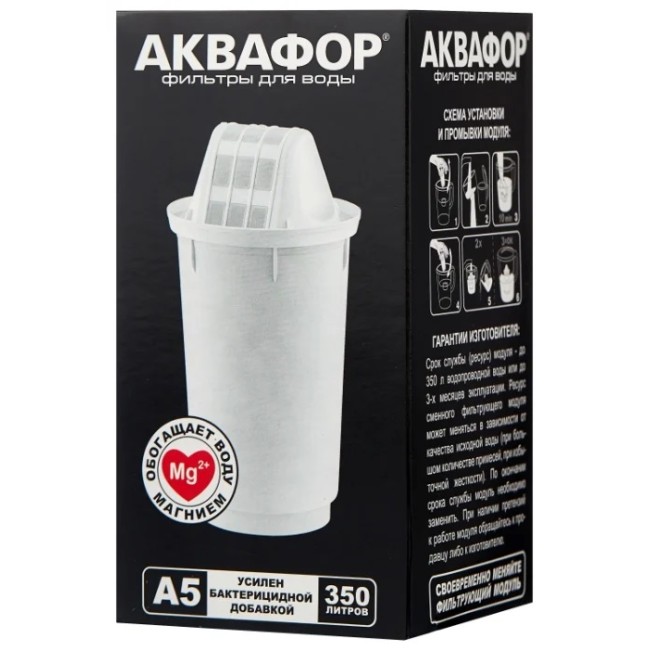 Количество в упаковке: 2шт. Картридж A5 создан специально для сложной водопроводной воды: ржавой, мутной, с большим количеством механических примесей. Даже в таких условиях A5 не забивается раньше времени, и продолжает очищать вашу воду от хлора и других растворенных примесей. Конструкция кувшинного модуля A5 позволяет ему самоочищаться каждый раз, когда вы набираете новую порцию воды в воронку. В итоге вы не меняете модуль в кувшине слишком часто. Учитывая также повышенный ресурс, модуль будет служить до 3 месяцев в семье из 3-х человек. Картридж A5 также сохраняет в воде природный магний, который полезен для работы сердца и сосудов. По данным ВОЗ, магний является самым дефицитным минералом для населения Земли: получить норму магния с обычным рационом питания в городе - очень сложно, а его недостаток вызывает заболевания нервной и сердечно-сосудистой системы. Картридж А5 содержит природный минерал - перламутровый доломит, который сохраняет магний.