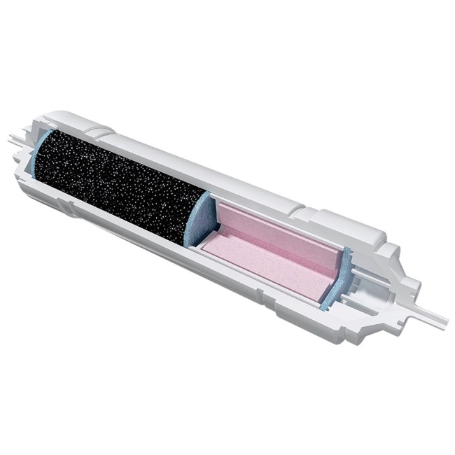 Сменный картридж для обратноосмотического фильтра под мойку. Предназначен для установки в 5-ю ступень обратноосмотической водоочистной системы «Профи Осмо М». Фильтроэлемент не только очищает воду, но и насыщает ее полезными минеральными компонентами – кальцием, магнием и фтором.