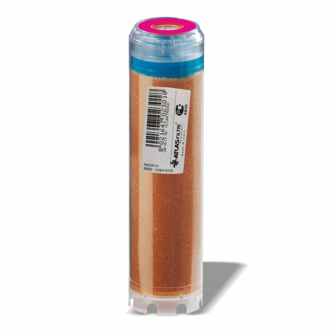 Atlas QA 10-CF SX-TS - картридж, изготовленный из катионной смолы сильного действия. Применяется для умягчения воды (удаление солей жесткости). Мягкая вода не будет образовывать накипь на чайнике и теплотехнике, а также мягкая вода не оставляет белых разводов на сантехнике. Картридж Atlas Filtri QA 10-CF SX-TS представляет собой пластиковый прозрачный корпус, заполненный засыпкой из Na+ катионитной ионообменной смолы сильного действия. Картридж идет с антимикробной плоской прокладкой, которая уменьшает распространение бактерий. Эффективен при максимальной номинальной пропускной способности до 90 л/ч. Фильтры для умягчения воды QA CF SX изготовлены с использованием материалов, пригодных для контакта с питьевой водой.