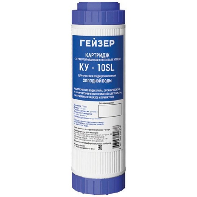 КУ - 20SL – картридж с гранулированным активированным углем из скорлупы кокосов. Используется для удаления из воды хлора, органических примесей, неприятного запаха и вкуса.