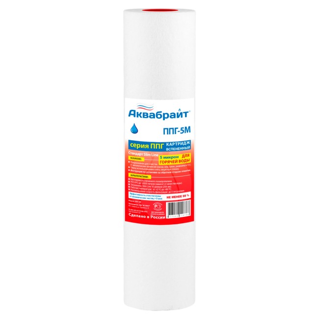 Картридж SlimLine ПП 10Мкм для механической очистки воды, горячая вода Аквабрайт