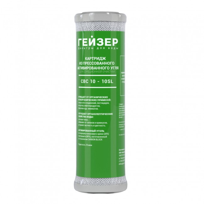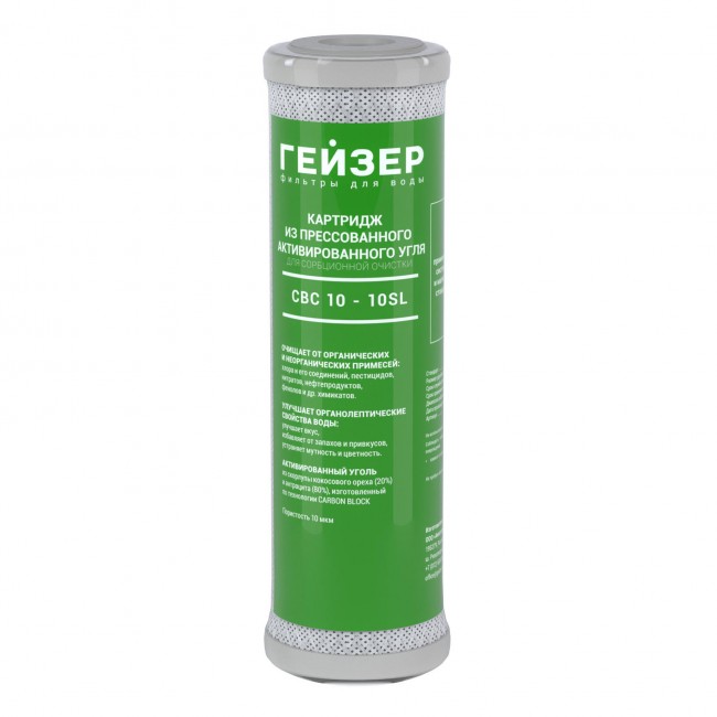 Картриджи СВС изготовлены из кокосового активированного угля, созданного по технологии карбон блок (СВС). Имеют большую сорбционную способность, чем гранулированный уголь. Этот картридж хорошо очищает воду от хлора, улучшает вкуса, цвет и запах воды. В материал картриджа введено серебро, что позволяет подавлять размножение бактерий внутри картриджа. Картридж карбон-блок прошел сертификацию NSF – самым жестким в мире международным требованиям по качеству. Температура очищаемой воды – 4 – 53 оС (рекомендуемая температура до 30оС)