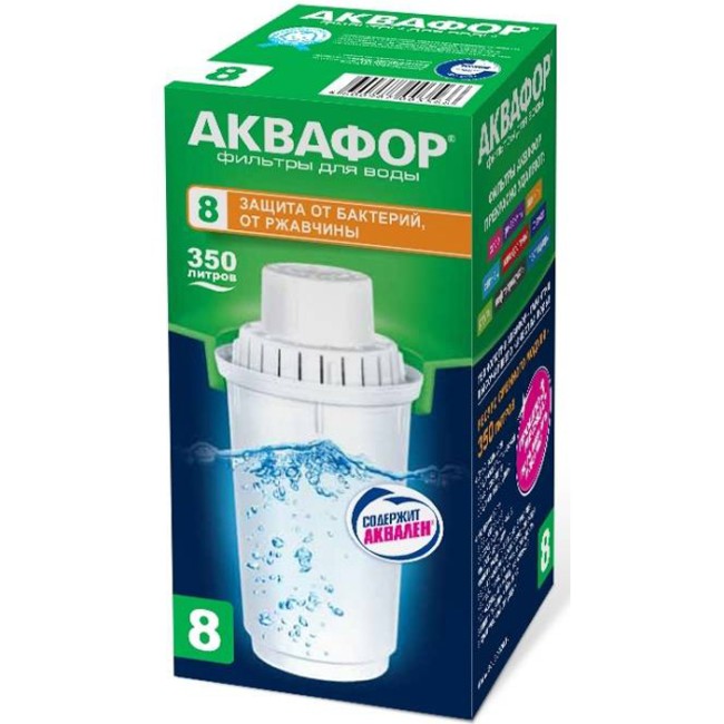 Ресурс модуля «Аквафор» В100-8 − 350 литров: в семье из 3-х человек этого хватит дольше, чем на 2 месяца использования. В среднем взрослому человеку в сутки нужно 3 литра воды, включая напитки, супы и бульоны. 350 литров чистой воды без ржавчины, посторонних привкусов и запахов. Активированный уголь, как губка, впитывает вредные примеси из водопроводной воды: хлор и его соединения, нефтепродукты, другие токсины. Делает воду прозрачной, улучшает ее запах и вкус. Аквален захватывает из воды тяжелые металлы (ртуть, свинец, медь, мышьяк), которые нередко находят в водопроводной воде. Подходит «Аквафор» (Арт, Атлант, Гарри, Гратис, Кантри, Люкс, Премиум, Престиж, Прованс, Триумф, Ультра, Премиум с электронным индикатором).