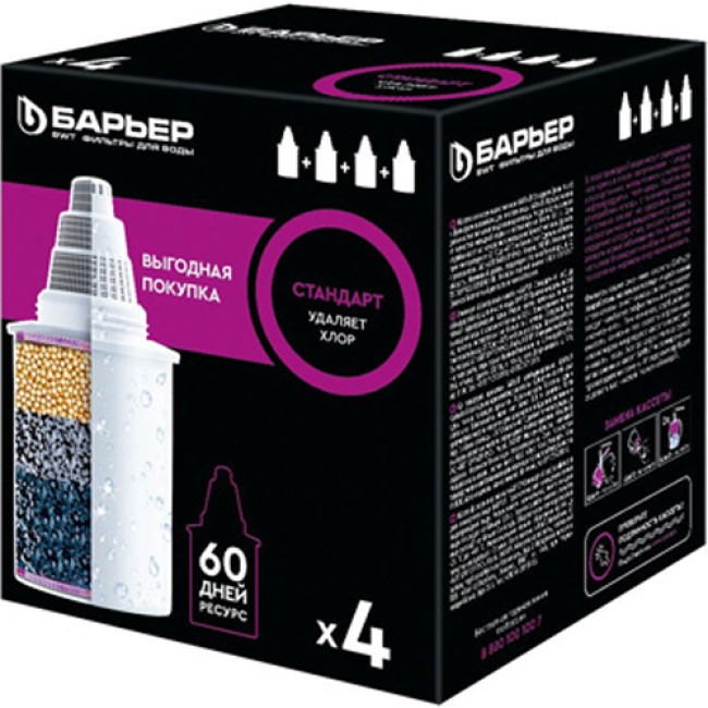 Кассета «Стандарт» для фильтра-кувшина с рабочим ресурсом до 350 литров разработана специально для очистки воды от органических и неорганических примесей, в том числе имеющих вид мельчайших частиц. Дополнительно кассета удаляет ионы тяжелых металлов.