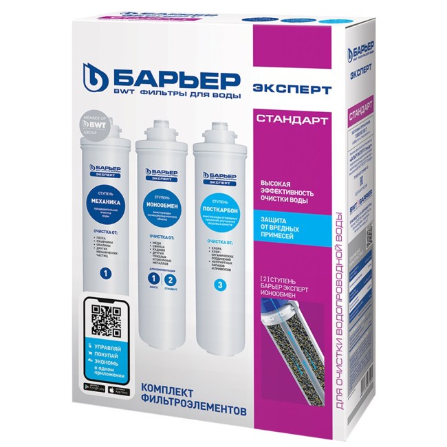 Комплект компактных сменных картриджей для фильтров. Применяется в трехступенчатых системах водоочистки «Эксперт Стандарт» для комплексной очистки водопроводной воды от основных содержащихся в ней вредных примесей.