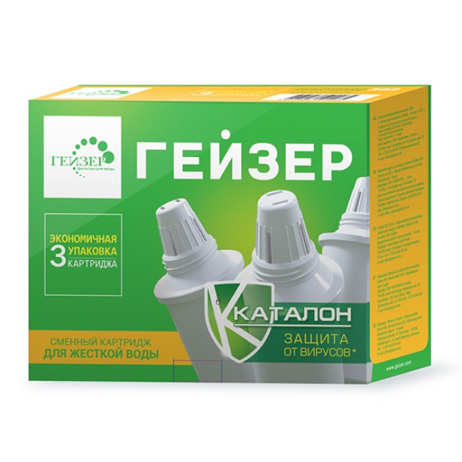 Количество в упаковке: 3шт. Универсальный и высокоэффективный картридж 302 для жесткой воды: Сменные картриджи имеют одинаковые присоединительные размеры, взаимозаменяемы и могут устанавливаться в любой фильтр-кувшин Гейзер (а с использованием переходников — в кувшины других производителей). Картридж 302 для жесткой воды имеет пять степеней очистки: Материал Каталон удаляет железо, тяжелые металлы, органические и хлорорганические соединения, бактерии и вирусы; Ионообменная смола для снижения жесткости воды; Высококачественный кокосовый уголь удаляет хлор, органические и хлорорганические соединения, устраняет неприятные запахи и привкусы воды; Серебро в металлической несмываемой форме для подавления жизнедеятельности болезнетворных бактерий; Механический постфильтр предотвращает вынос фильтрующих материалов в очищенную воду.