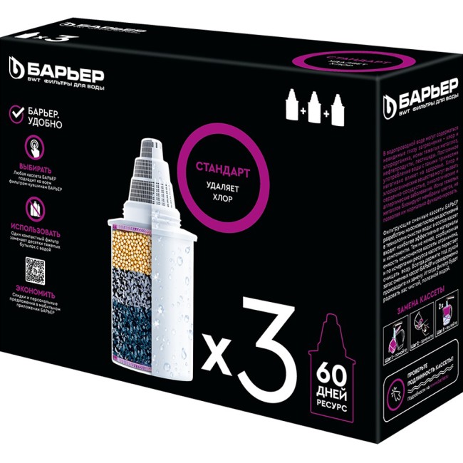 Кассета «Стандарт» для фильтра-кувшина с рабочим ресурсом до 350 литров разработана специально для очистки воды от органических и неорганических примесей, в том числе имеющих вид мельчайших частиц. Дополнительно кассета удаляет ионы тяжелых металлов.