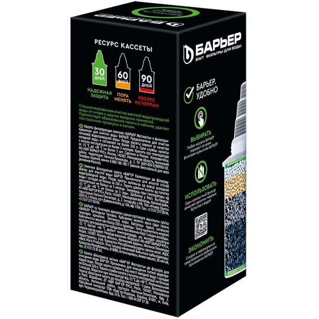 Кассеты «Жесткость» призваны убрать излишнюю жесткость воды, что способствует минимизации образования накипи. Элементы также удаляют хлор и ионы тяжелых металлов. В упаковку входит 1 кассета для фильтра.