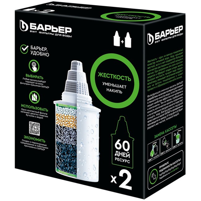 Кассеты «Жесткость» призваны убрать излишнюю жесткость воды, что способствует минимизации образования накипи. Элементы также удаляют хлор и ионы тяжелых металлов.