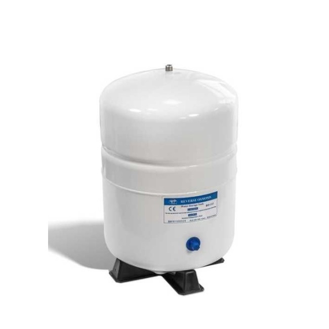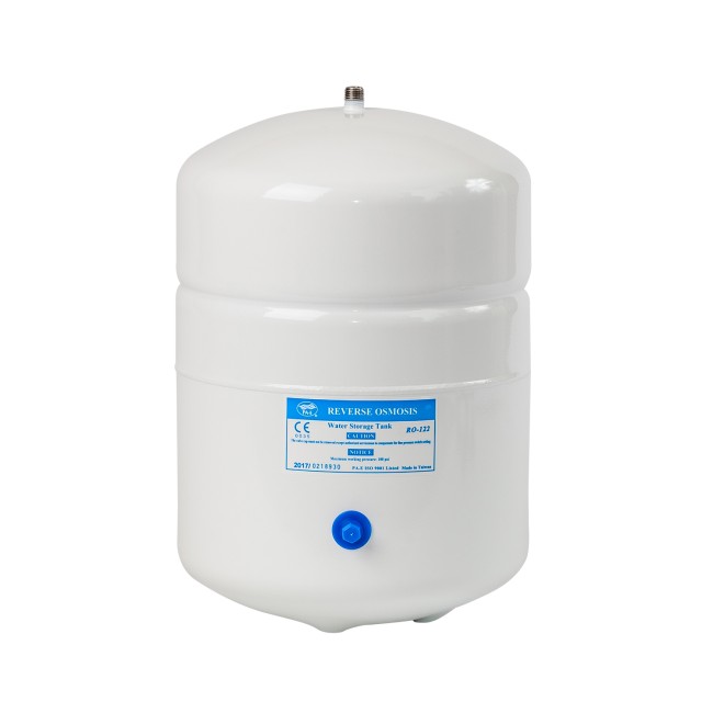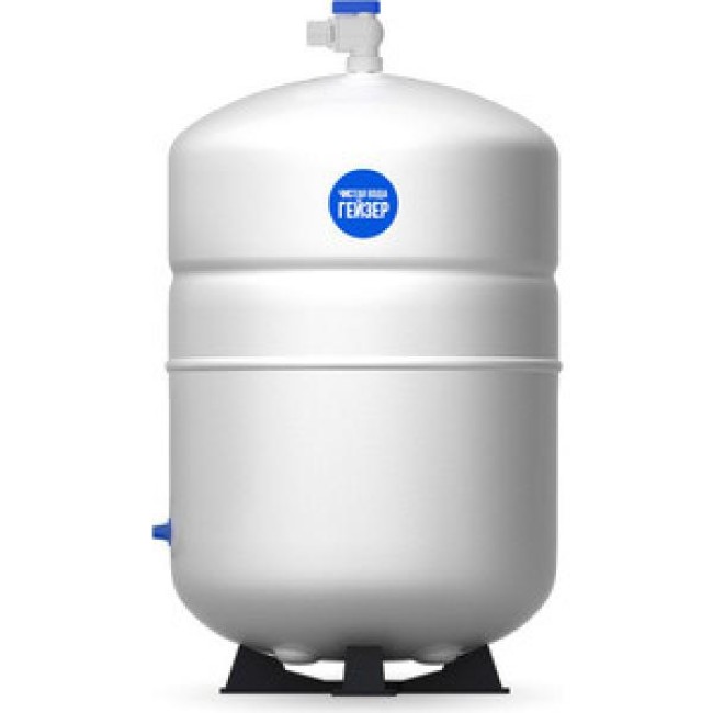 Гидроаккумулятор Гейзер RO-120 предназначен для подключения к системам обратного осмоса Гейзер Престиж и фильтрам Нанотек. Данное устройство необходимо для создания резерва чистой воды, так как, учитывая производительность и специфику фильтрации систем обратного осмоса, невозможно получить большой объем воды сразу. Внутренняя емкость бака имеет два отсека, которые разделены резиновой диафрагмой. В нижней герметичной части закачан воздух, который создает давление 0,5 бар снизу. В верхней же части собирается отфильтрованная вода, которая давит на мембрану и создает противодействие воздуху в нижнем отсеке. При достижении необходимого для подачи давления, осмос выключается. Полезный объем бака может варьироваться от 50 до 80 %.