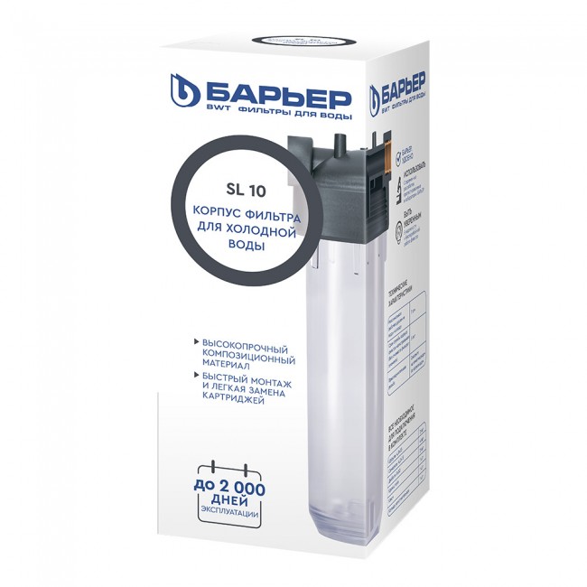 К данному корпусу подходят любые сменные картриджи/фильтроэлементы БАРЬЕР стандарта SL10 для холодной воды.