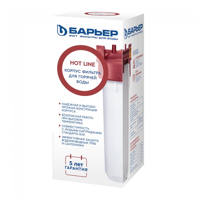 К данному корпусу подходят любые сменные картриджи/фильтроэлементы БАРЬЕР стандарта SL10, предназначенные для горячей воды.