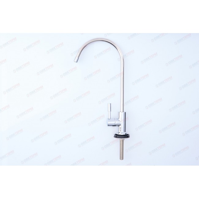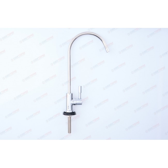 Кран для подачи питьевой воды после фильтра в классическом серебряном цвете. Выполнен из латуни по ГОСТу 15527-2004. Для Вашего удобства кран можно установить как на кухонную мойку, так и на столешницу. Высота крана 25,2 см, высота резьбовой части - 7,5 см.