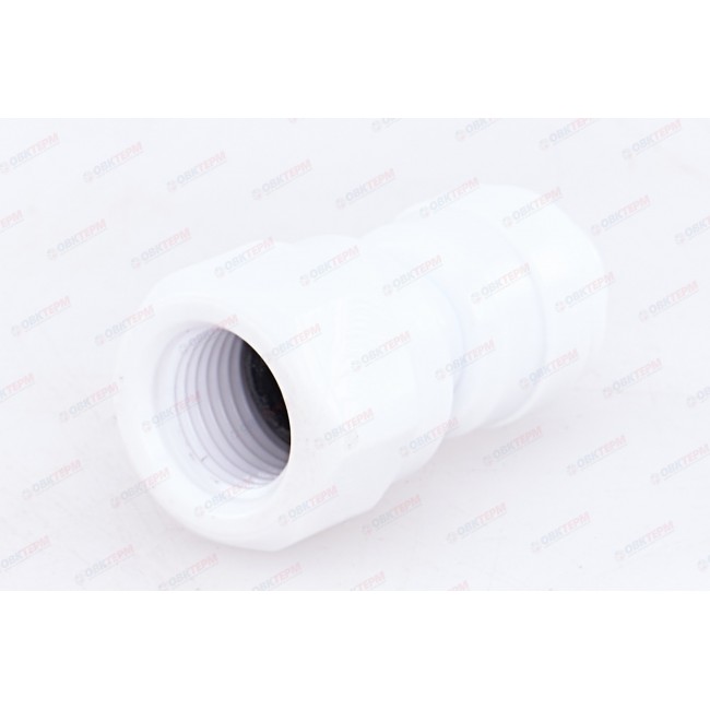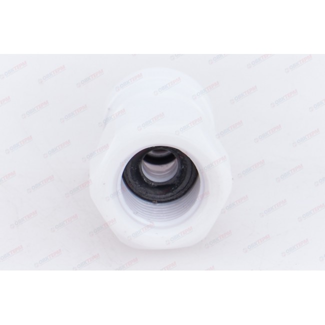 Количество в упаковке: 1шт. Фитинг с внутренней резьбой для соединения фильтра и крана для питьевой воды. Дает возможность соединить отрезки пластиковых коннекторов и трубок разных диаметров и надежно зафиксировать их. Деталь изготовлена из пищевого пластика.