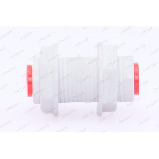 Количество в упаковке: 1шт. Пластиковый фитинг, предназначенный для соединения пластиковых коннекторов и трубок одного диаметра при сборке системы очистки воды. С помощью этой детали можно соединять элементы системы на прямых участках. Обеспечивает надежную фиксацию коннекторов и трубок. Используется в фильтре «К-ОСМОС».