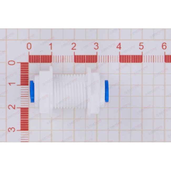 Количество в упаковке: 1шт. Фитинг для соединения пластиковых коннекторов и трубок диаметром ¼ дюйма. Деталь изготовлена из специального химически нейтрального пластика, который не выделяет вредных веществ. Деталь используется для сборки фильтрующих элементов в системе водоочистки, действующей по принципу обратного осмоса. Подходит для фильтра «К-ОСМОС».
