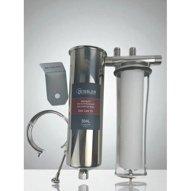 Колба из нержавеющей стали 10"Slim Line 3/4" (ZEISSLER) (картридж ПП 20/10 Мкм)