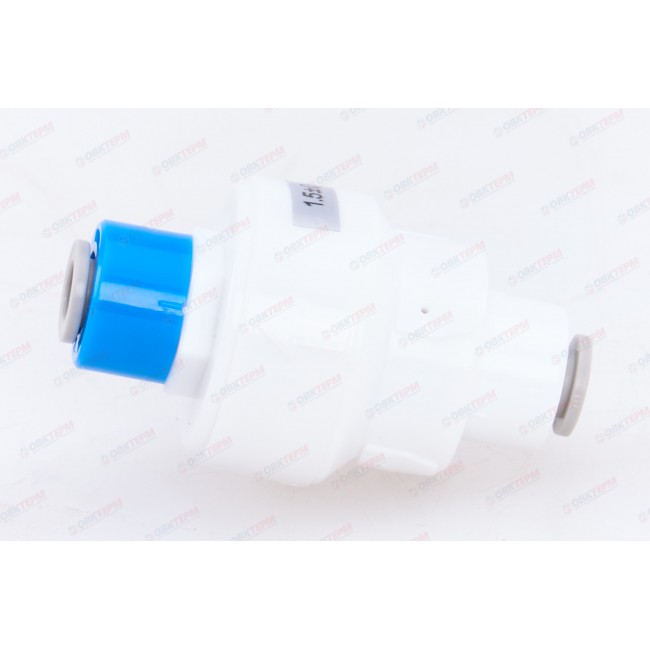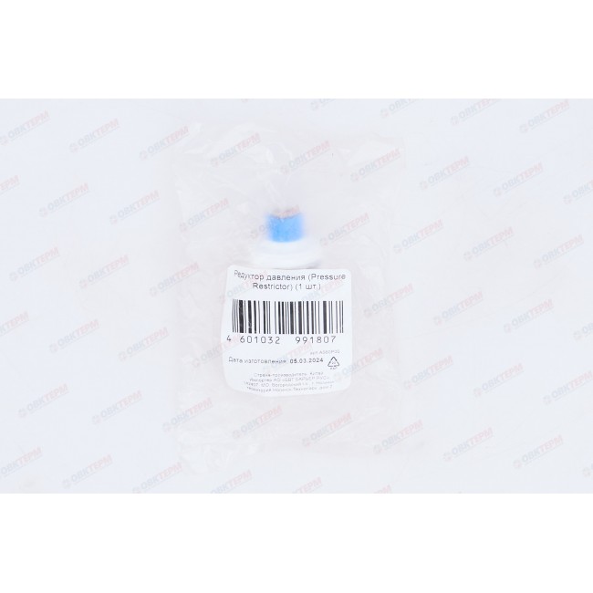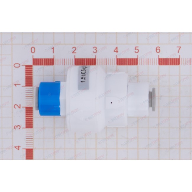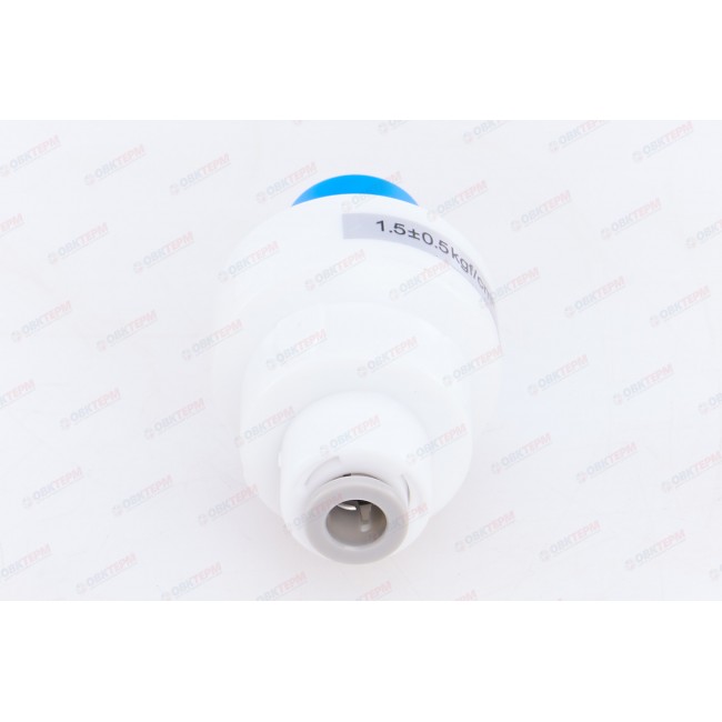 Количество в упаковке: 1шт. Редуктор давления Flow Restrictor, изготовленный из высокопрочного пластика, обеспечивает снижение напора воды в системе водоочистки до рабочих показателей, определенных техническими характеристиками фильтров. Это устройство позволяет снизить давление воды в системе до 4 атм.