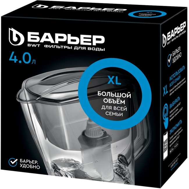 Большой объем 4 литра – отличное решение для всей семьи. Автоматическая воронка открывается при наклоне кувшина: благодаря этому не нужно ждать пока вся набранная вода пройдет через фильтр.