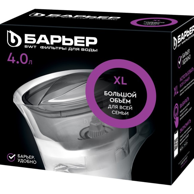 Вместительный фильтр-кувшин с эксклюзивным дизайном. Горизонтальные матовые полосы на корпусе подчеркивают форму кувшина. А удобная цельнолитая ручка и специальный выступ на крышке кувшина делают модель эргономичной и удобной в использовании. Объем 4 литра.