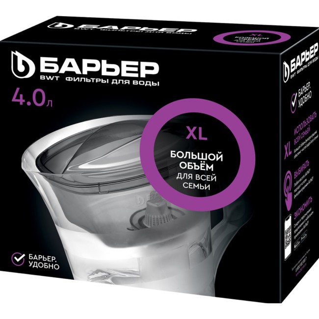 Вместительный фильтр-кувшин с эксклюзивным дизайном. Горизонтальные матовые полосы на корпусе подчеркивают форму кувшина. А удобная цельнолитая ручка и специальный выступ на крышке кувшина делают модель эргономичной и удобной в использовании. Объем 4 литра.