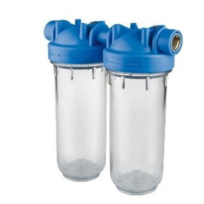 Колба фильтра Atlas представляет собой двойной корпус для фильтрации и обработки холодной воды до 45оС, совместимый как с картриджами со стандартными плоскими прокладками, так и со специальными картриджами с быстроразъемным соединением и двойным уплотнительным кольцом. Правильное расположение картриджей обеспечивается с помощью системы центрирования Filter-Fit. Двойная колба фильтра Duo рассчитана на двухстадийную обработку воды. Водяные фильтры DP доступны с прозрачными или матовыми стаканами (белого или синего цвета), которые варьируются в зависимости от желаемой высоты картриджа от 5" до 20".