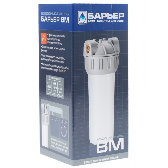 Предфильтр ВМ отлично справляется с защитой бытовой техники, использующей воду, от нерастворенных частиц: ржавчины, окалин, песка и других загрязнителей.
