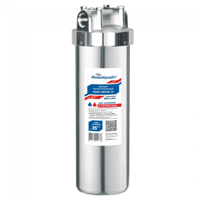 Фильтр-колба SlimLine нержавеющая сталь 1/2" для горячей воды Аквабрайт