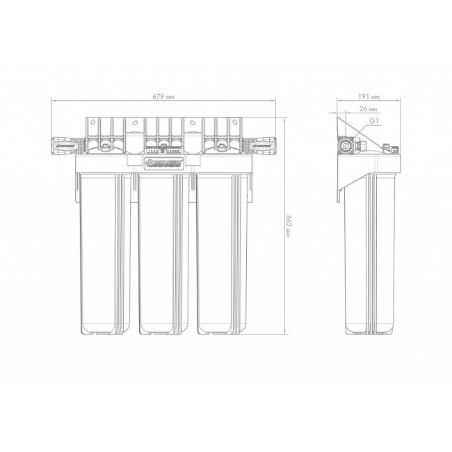 Фильтр-колба тройная ВВ20 горизонтальное подключение Джилекс