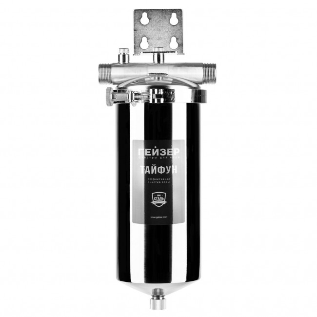 Корпус Гейзер Тайфун 10" BB устанавливается на «входе» холодной воды в квартиру или коттедж. В зависимости от установленного картриджа может производить очистку от механических загрязнений (ржавчина, окалина, песок и т.д.), хлора и органических соединений, солей жесткости, железа и марганца. Магистральные фильтры — это простой и надежный способ защиты бытовой техники и сантехнического оборудования от засорения, коррозии, разрушающей металлические трубы и фитинги, а также выпадения налета ржавчины. Изготовлен из нержавеющей стал высокого качества марки 304L. Внизу корпуса предусмотрен клапан слива воды для простой замены картриджа.