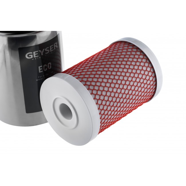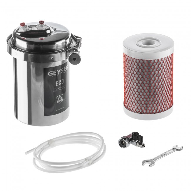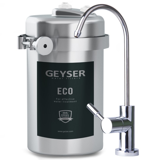 Фильтр Гейзер ЭКО разработан для регионов с низким и средним уровнем минерализации воды. В фильтре используется композиционный картридж Арагон 3 ЭКО, состоящий из предфильтра, материала Арагон и высококачественного кокосового угля. Очищает воду от нерастворимых примесей, железа, органических соединений и хлора. Нормализует жесткость воды. Корпус фильтра выполнен из пищевой нержавеющей стали. Хомутовое соединение фильтра обеспечивает легкую замену картриджа. Прост в установке и обслуживании. Важным свойством является самоидикация – фильтр сам подскажет, когда пришло время менять картриджи (уменьшение напора в кране для чистой воды).