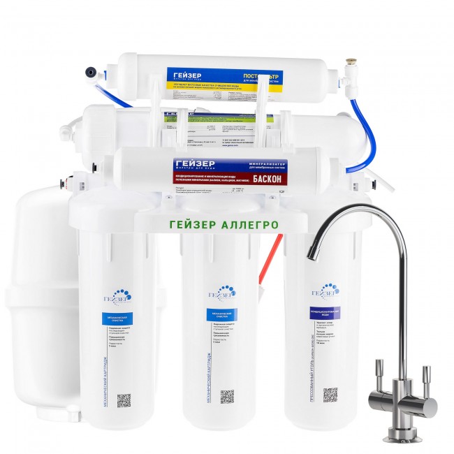 Мембранный фильтр, обратный осмос Аллегро М С минерализатором Гейзер