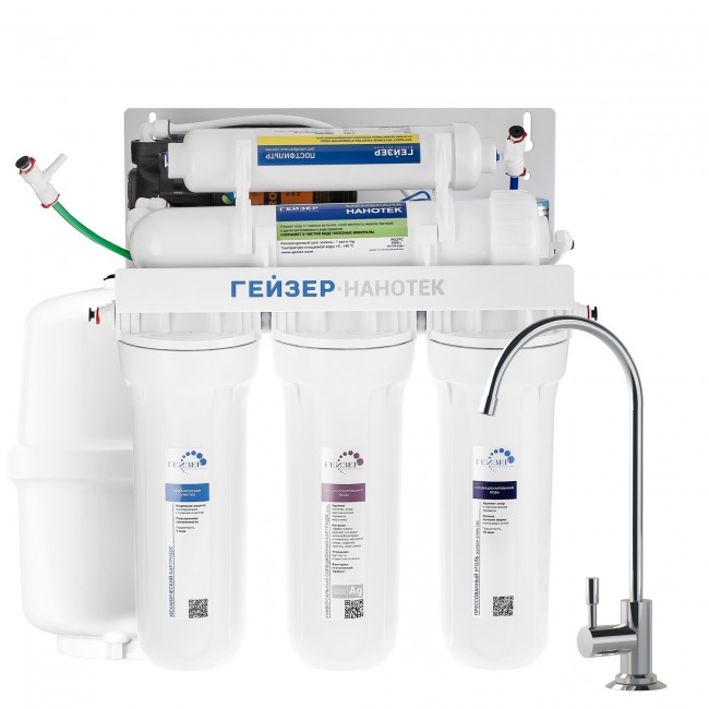 Мембранный фильтр, обратный осмос Нанотек П с насосом Гейзер