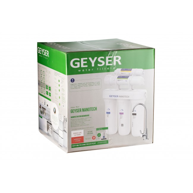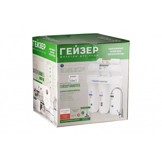 Мембранный фильтр Гейзер Нанотек П - это система с нанофильтрационной мембраной, которая используется для удаления из воды тяжелых металлов, тонкодисперсных примесей, органических веществ и микроорганизмов. Применяется безреагентная дезинфекция воды. Умягчение происходит на 80-85% и сохраняется оптимальный для здоровья состав воды без дополнительной минерализации.