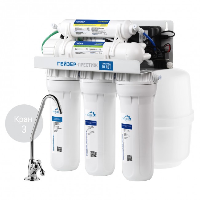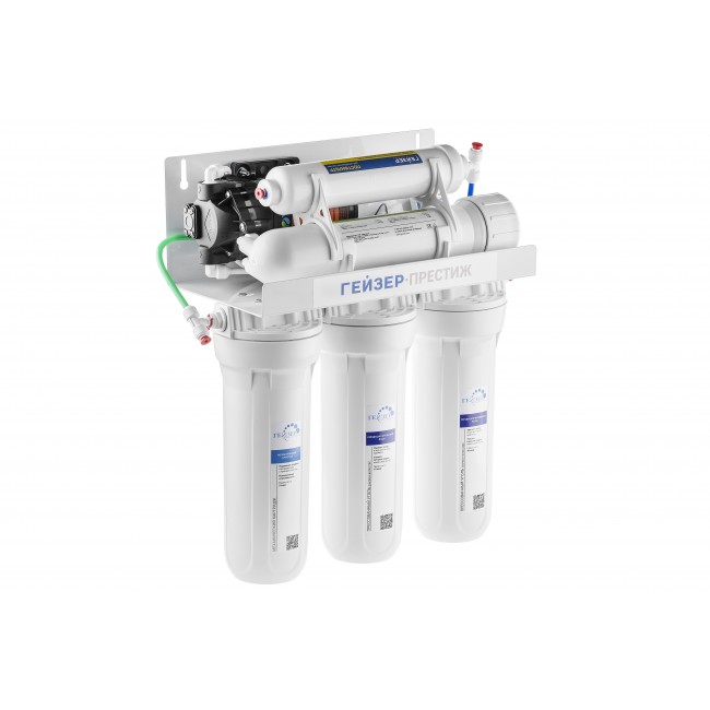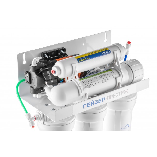 Мембранный фильтр, обратный осмос Престиж П С насосом, металлический бак Гейзер